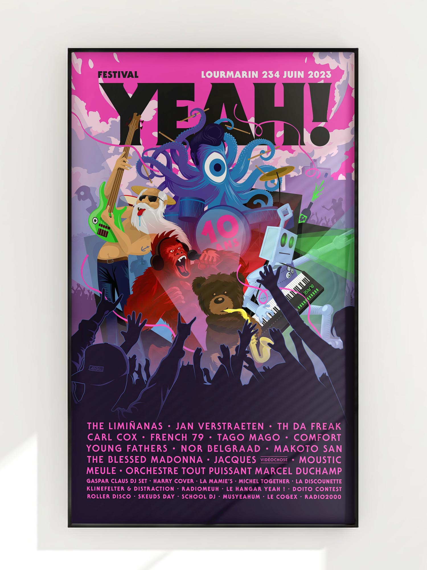• Affiche 40x60, impression digitale encres UV sur papier coloré non couché 240gr, 3 exemplaires, numérotée signée.